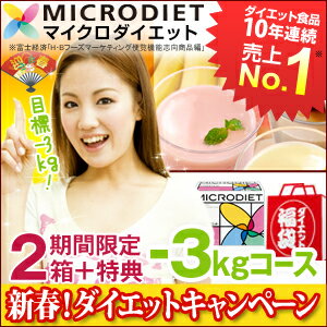 名称ダイエット食品2014新春ダイエットキャンペーン -3kgコース(通常価格:55,600円)内容量・お好きなマイクロダイエット 2箱(通常価格:1箱17,640円)・ドリンクミックスパック 1箱(・・・・・・・・・・